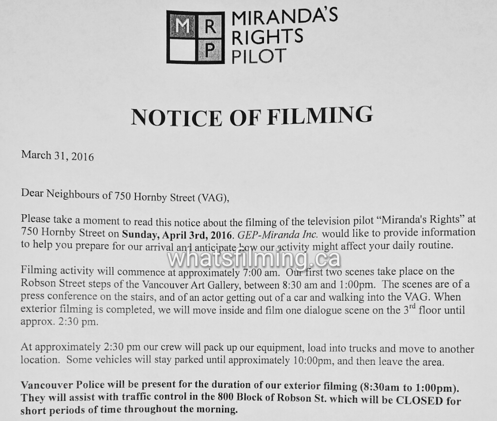 Mirandas Rights Filming Notice April 3, 2016 Vancouver Art Gallery