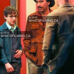 Uncle Monty, Violet and Klaus arrived at the Cinema along with the evil Count Olaf, who was disguised as Stephano with a long beard, glasses and a bald head. Uncle Monty was outfitted with a unique red coat, matching top hat and moustache. After a quick interaction with the ticket clerk, the group entered the theatre. Some of the theatre interiors were filmed earlier in the week at The Cultch Theatre in East Vancouver.